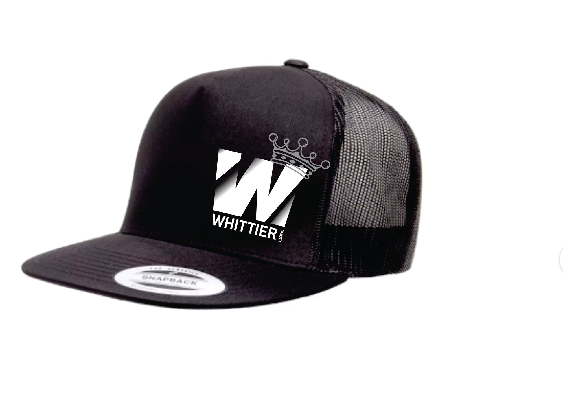 WVBC Flat Bill hats with WHITE Whittier Logo